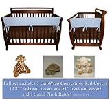 CribWrap Crib Wrap 3PC Rail Cover Set By Trend Lab - 1- 51" Front Rail Cover & 2- 27" Side Rail Covers & Bonus Cloud B Plush Rattle, Blue Fleece by TrendLab