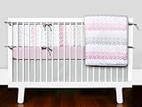 Olli & Lime logan 4 Piece Crib Bedding Set, Pink/White