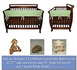 CribWrap Crib Wrap 3PC Rail Cover Set By Trend Lab - 1- 51" Front Rail Cover & 2- 27" Side Rail Covers & Bonus Cloud B Plush Rattle, Sage Fleece by TrendLab
